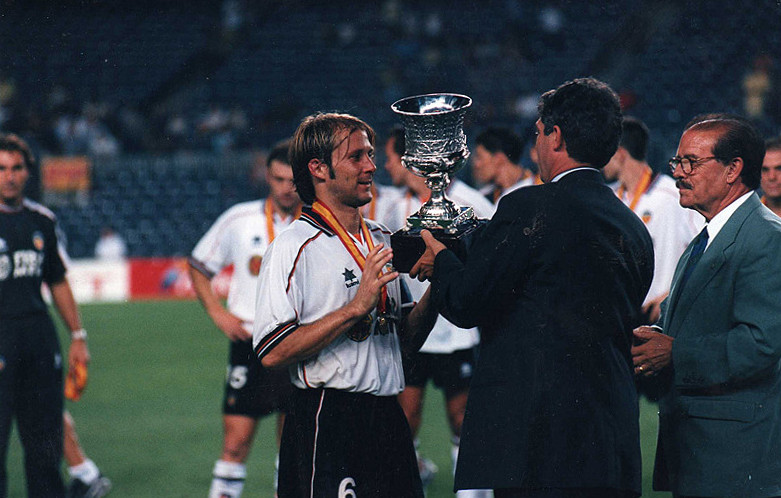 Quedaban quince minutos para levantar un trofeo que, hasta entonces, el Valencia no poseía. Fue importante constatar que Van Gaal ya sabe cómo parar al Piojo. Reiziger sí le tiene cogida la medida al argentino. Tal vez la salida de Óscar, un gesto hacia la galería, un gesto que no quiso otorgar Cúper. La ovación se la llevó en su lugar otro catalán: Gerard. Y para que el partido tuviera de todo, López Nieto expulsaba a falta de siete minutos para el final al valencianista Albelda. Con diez jugadores, el Valencia levantó su primera Supercopa de España.