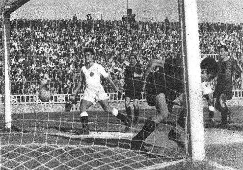 A los veinte minutos de juego ya tenia el Valencia sus tres tantos, entrados, en los mejores momentos de fútbol del partido, por Gorostiza (2), ágil y oportunista, y por Mundo, resuelto y firmo rematador. Cerca del descanso, Valle-Bravo, con remate doble de éste por devolver el primero el poste, marcaron el primer tanto azul-grana. A los diez minutos de la segunda parte, el «penalty» y Vergara marca el segundo tanto local. En la jugada del «saque libre» tirado por Bravo, León acierta a conseguir el tercero en un afortunado remate fulminante. A los treinta minutos, después de un «corner» un gran tiro de Franco rebota por debajo en el larguero y Vergara acude resuelto al remate para dar con la cabeza y conseguir el tanto de la inesperada, pero justa victoria del equipo local que, con su segundo tiempo de mayor entusiasmo, anuló el primero de mejor fútbol del Valencia.