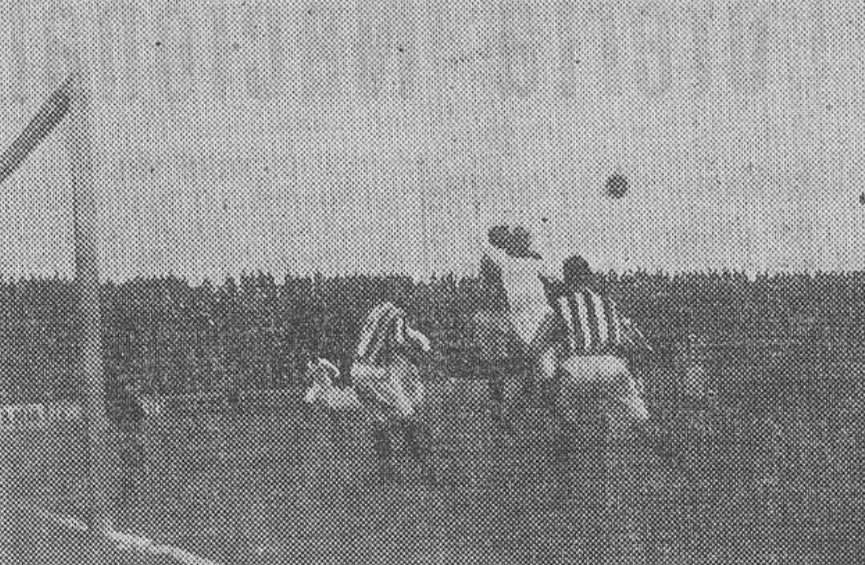 Otro avance de Pinto II, recibiendo el balón de Roca. Llovet le sale al encuentro, dándole un patadón al pecho, pero ni tan siquiera se le amonesta. Se inicia un juego sucio, por responder Archilés y Roca con los mismos procedimientos y los fouls son continuados, pero sin que tengan sanción. Cubells cambia su puesto con Ródenas, lo que hace que se anulen los esfuerzos de ambos. Motes cambia a Cordellat, quien centra, entrando al remate Ródenas. Rechaza Alanga, y Montes tira alto. Archilés goza atropellando materialmente a sus contrarios, pero Villaverde no quiere contrariarle, como tampoco a Rino, que estando fuera de juego, recibe el balón y centra. Origínase un lío monumental que termina en corner que, ejecutado por Cordellat, rechaza Marcos a out.