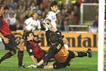 El Valencia ha vencido por 4-1 en la ida de las semifinales de la Liga de Campeones con lo que pone claramente en franquicia la eliminatoria de cara al partido de vuelta que se disputará en el Camp Nou el 10 de mayo. Los dos goles de Angulo, el de Mendieta y el postrero de Claudio López meten al Valencia con pie y medio en la final de Paris del 24 de mayo.