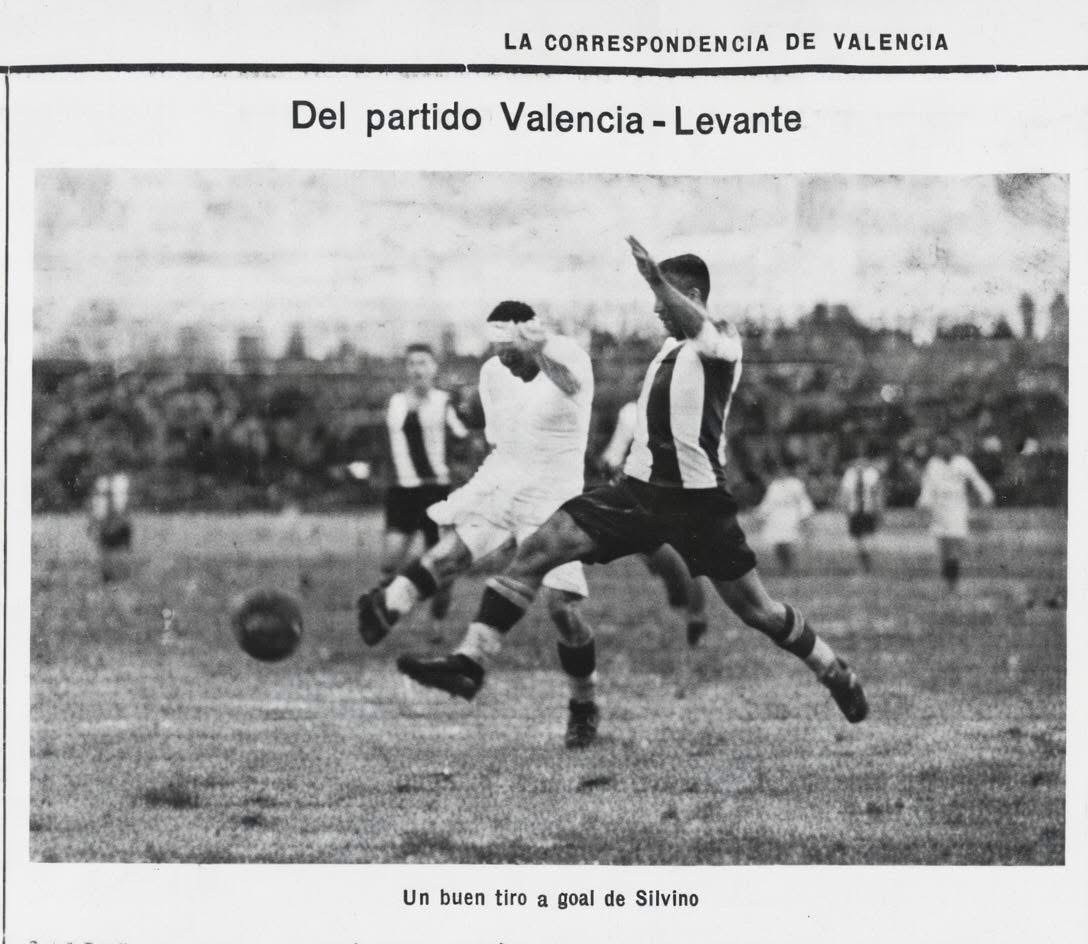 Con floja entrada, a causa de la alineación del once valencianista, ha tenido efecto este encuentro en que habian puesto bastantes esperanzas los levantinos. El partido ha sido muy bien jugado, con corrección y desenvolviéndose con buen juego. El primer tiempo sobre todo ha sido una exhibición de los levantinos que han librado un bello combate. Esta superiorídad no ha sido suciente para privar de todo movimiento a sus rivales, pero sí para permitir una brillante actuación de Villarroya, que tuvo una tarde inspiradisima. El tiempo terminó con un goal a cero marcado por Gorín, de centro de Aratells.